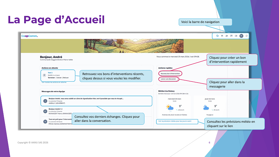 Cette application vous servira pour créer vos bons d'interventions, gérer vos pointages, échanger avec votre équipe, votre manager et la mairie dans laquelle vous interviendrais, et à gérer vos réservations de matériel via la calendrier partagée.