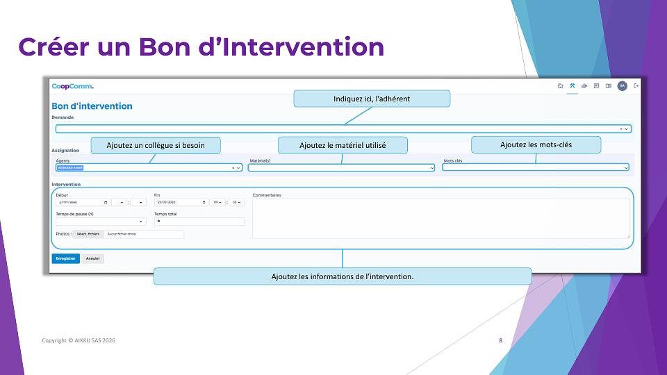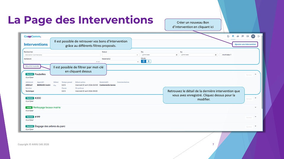 Vous serez amener à utiliser l'application quotidiennement lors de vos journées d'intervention.