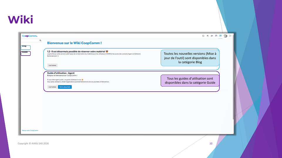 - Accès Wiki : Le Wiki (Guides et Blog) est maintenant ouvert aux adhérents et aux agents pour un meilleur partage d'informations.